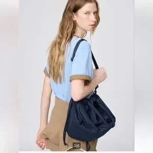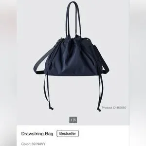 Best selling new Uniqlo C drawstring tote / crossbody bag in navy blue. NWOT, never used.