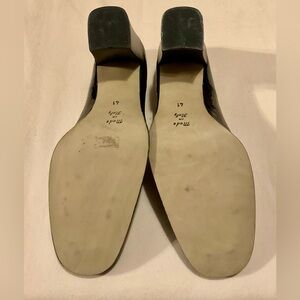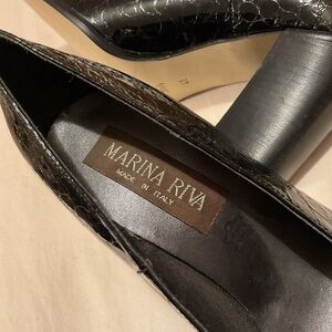 NWOT. Vintage black heeled loafers made in Italy. Features a patent crocodile-embossed finish and a silver horse-bit buckle detail on the vamp. 3.5” heel. No box. According to Riva size chart a 40 = U.S. size 9 and 41 = U.S. size 9.5