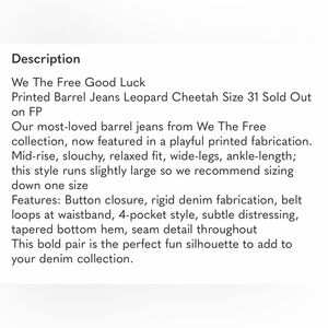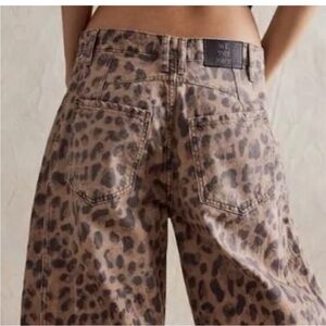 NWOT WE THE FREE Free People Good Luck Mid Ruse Barrel Jeans leopard animal 31