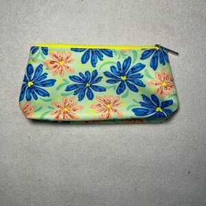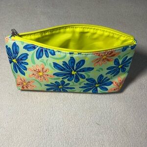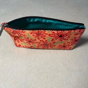 Set of four Clinique pouches. Vibrant floral and abstract designs. Perfect for organizing essentials.