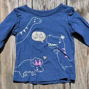 Carter's 18 Month Girls Blue Long Sleeve Gold Glitter She Rex Tee Shirt