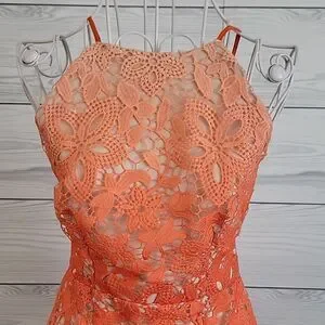 A.Peach crocheted lace halter dress in sunburnt orange Women's Size S
