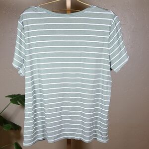 Croft & Barrow Green White Striped Relaxed Fit Short Sleeve Tee 100% Cot…