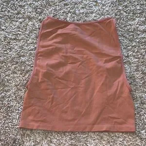 Cropped sleeveless tank top in a warm rust color. Simple scoop neckline and clean lines. Soft stretch fabric for everyday wear.