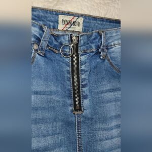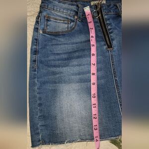 good used condition. super cute zipper front. raw edge hem. very versatile. this can go beach to rock to country in a heartbeat.