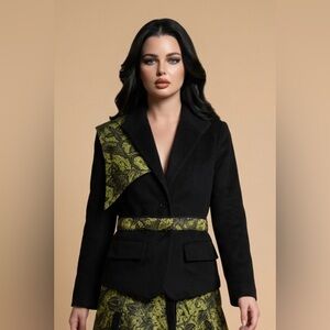 This stylish women's jacket features a striking black and green design, perfect for adding a touch of elegance to any outfit. Ideal for both casual and formal occasions. Last photo shows skirt I used to create this look. P2P 18-19”
