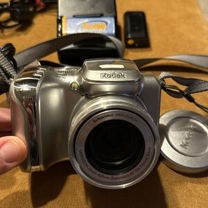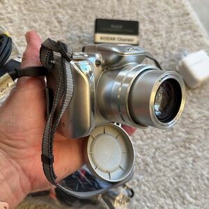 - Camera, lens cap, neck strap, Kodak rechargeable battery ( I threw in another generic battery) Kodak Li-Ion Rapid Battery Charger