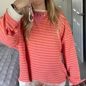 So cool and classic, this timeless crewneck is featured in an oversized, slouchy silhouette and staple striped print with contrasting hems for added dimension.