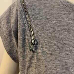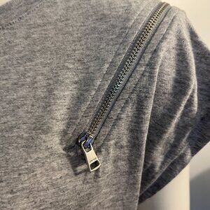 Brand new this tee by DKNY has zipper details on both shoulders. Made of 60% Cotton and 40% Modal.