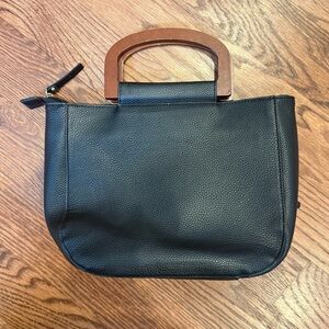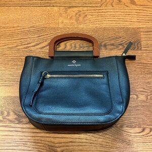 Nanette Lepore Black Pebbled Satchel with Wooden Handles