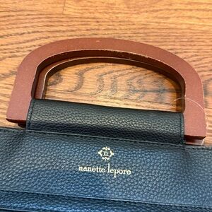 Nanette Lepore, Wooden Handle, Boho, Minimalist, Classic, Pebbled Leather, Satchel, Crossbody, Versatile, Professional, Chic, Streetwear.