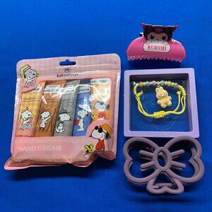 Here we have a nice stitch backpack, brand new still in the plastic, did not take it out for Pics, you also get two Hair barrettes, one pack of hand cream with your order, Thank you. all is brand new.