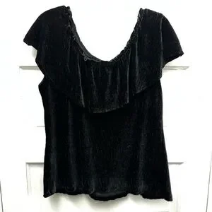 Anthropologie Black Velvet Ruffle Top Medium Off Shoulder Party Blouse