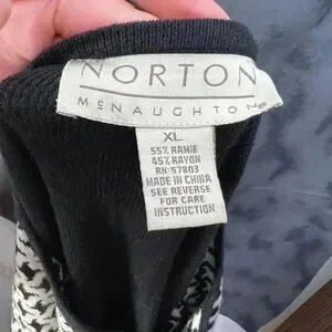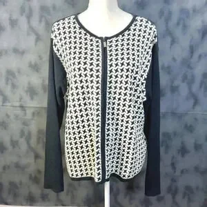 Vintage Norton McNaughton Black and White Houndstooth Zip Up Sweater Size XL