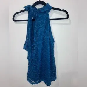 Cable & Gauge • Elegant Blue Lace Halter Top XS NWT