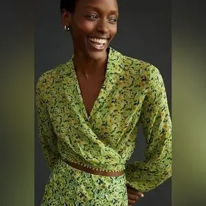 The soft botanical print paired with the wrap design makes it perfect styled with high-waisted denim, trousers, or a skirt for an elevated everyday look.