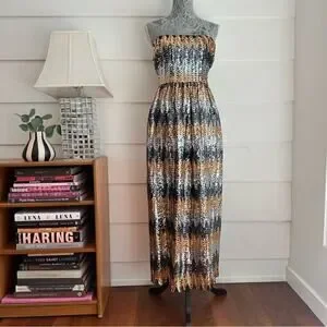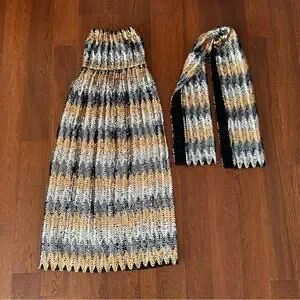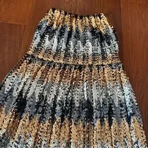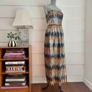 Vintage black, silver and bronze sequin strapless gown with a back zipper by Zeepha Couture. This stunning dress also comes with a matching shawl. A perfect dress for a special occasion! No size marked, runs like an xxs (max 30” bust) Please see measurements below: