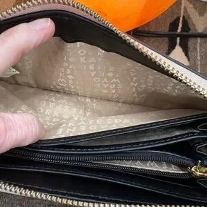 Kate Spade Wellesley Pebbled black and cream wallet. Features black and cream design. Stylish and functional. Like new condition. 12 credit card slots. Two slip pockets either end. Zipper coin pocket. Outside slip pocket. Incredible amount of storage.