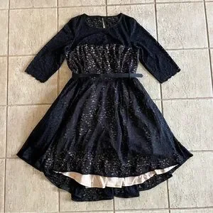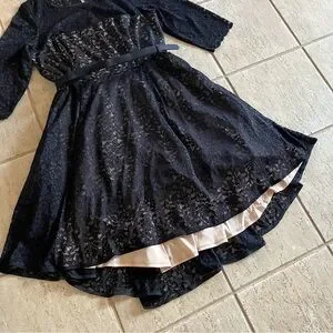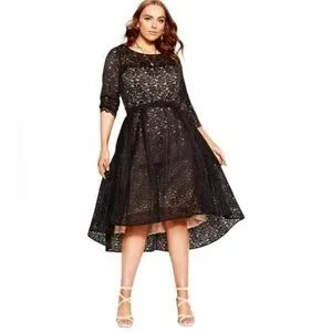 City Chic Womens Plus Size 20 Black Lace Lover Hi Low Midi Belt Dress NWT A-Line