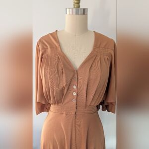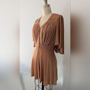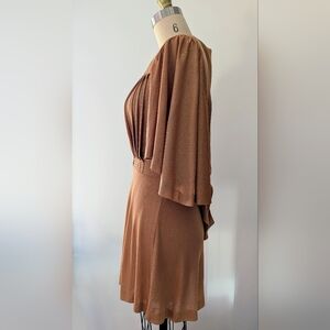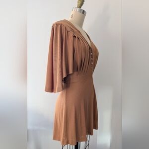 Vicky Tiel - Vintage 80s Camel Dress/Top With Butterfly Sleeves - Size S/M