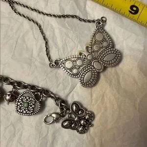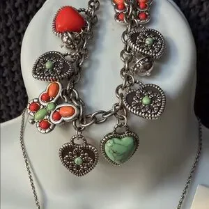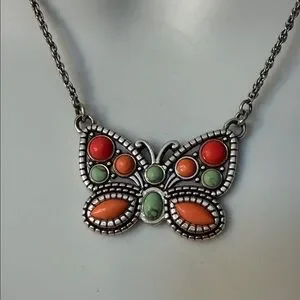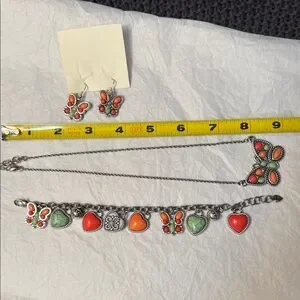 Charming butterfly necklace set by Brighton. Features vibrant red, green, and orange details. Adds a playful touch to any look.