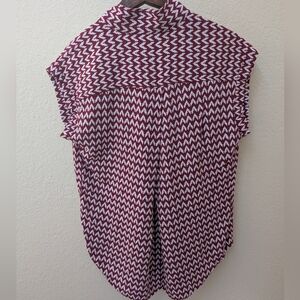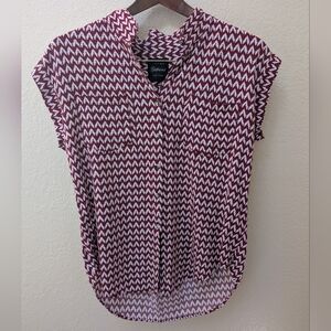 Jach's Girlfriend Red + White Chevron Cuffed Sleeve Button Down Blouse. Size M
