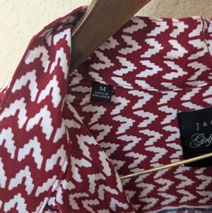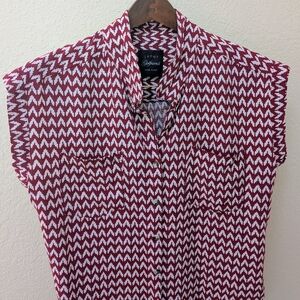 Jach's Girlfriend Red + White Chevron Cuffed Sleeve Button Down Blouse. Size Medium