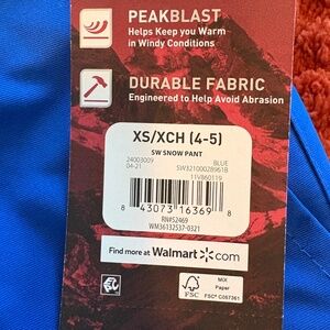 Swiss Tech Kids Blue Snow Pants Size 4-5 Waterproof Winter Ski Pants NWT
