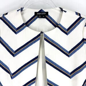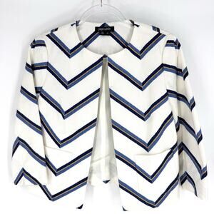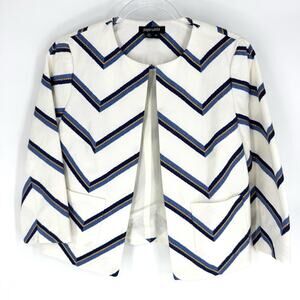 Paperwhite Chevron Open Jacket White Blue Gold Size 4