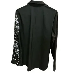 Manfinity Mens Tribal Graphic Print Button Up Shirt Black White Long Sleeve S