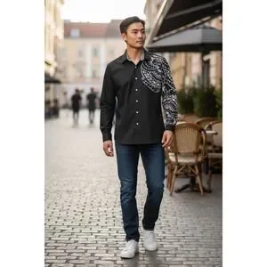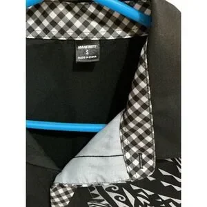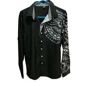 Keywords: Tribal, Graphic, Contemporary, Streetwear, Gingham, Monochrome, Polynesian Inspired, Tattoo Print, Button Down, Casual, Modern, Edgy, Woven Shirt, Mens Fashion, Manfinity