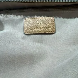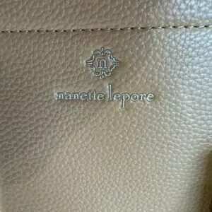 Nanette Lepore tote/shoulder bag in a warm tan color with pebble textured faux leather. Detachable pouch of suede like material has a slip pocket for cards or license. Dual top handles. Gold toned hardware. Top zip closure with plenty of interior space to carry all your essentials and then some! The interior is fully lined with a zippered pocket on one side and two open slip pockets on the other. Perfect for daily use. Stylish and versatile.