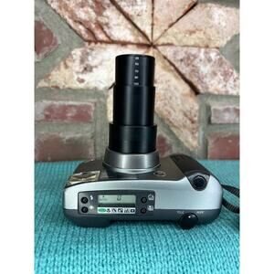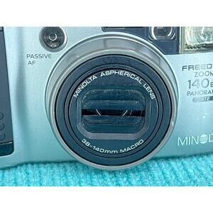 Minolta Freedom zoom 140 Panorama Date. This is a very full featured camera with a spectacular zoom lens for a point and shoot. Mechanically tested and working but I have not film tested it. has some fairly significant scuffing to the finish around the edges and the lens cover does not fully close as it should when the camera is turned off so I have priced it accordingly.