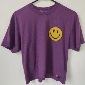 Aviator Nation Women’s T-Shirt Smiley Never Stop Chasing Rainbows Size Medium G