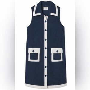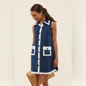 Chic and preppy Atlantic-Pacific x Lake Pajamas Darcy terry cloth dress in classic navy with crisp white contrast trim.