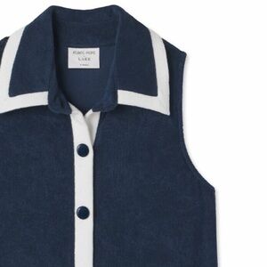 Atlantic-Pacific x Lake Pajamas Darcy Terry Cloth Button Front Shift Dress Navy