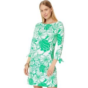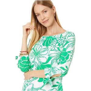 The Lilly Pulitzer Spearmint Oversized Kiss My Tulips Lidia Shift Dress in size Medium features a beautiful floral pattern in a vibrant green color. With 3/4 sleeves, a boat neck neckline, and a pullover closure, this short dress is perfect for casual occasions during the summer and spring seasons. Made of cotton with a woven fabric type, this dress from Lilly Pulitzer offers a stylish and comfortable option for any woman looking to make a statement with her outfit.