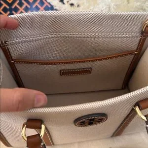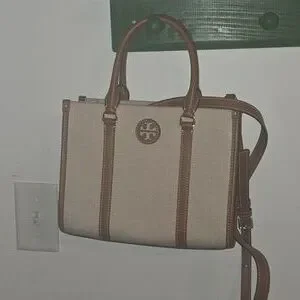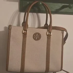 Tory Burch blake canvas Tan and Cream tote bag with brown strap