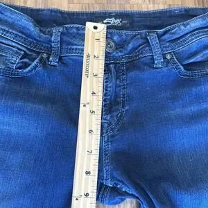 The Silver Suki Super Skinny Jeans are a stylish and sleek pair of denim pants designed for women in size 30. Featuring a dark wash and stretch fabric, these mid-rise jeans are perfect for any season. The slim fit and skinny style offer a flattering silhouette, while the embroidered logo accents add a touch of personality. With a classic 5-pocket design and unique distressed details, these Silver Jeans are a versatile and fashionable choice for any wardrobe. Made from a comfortable cotton-spandex blend, these jeans are easy to care for with machine washable instructions.