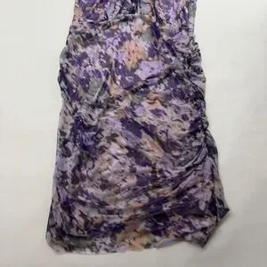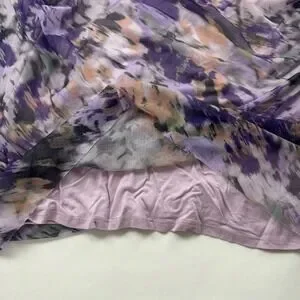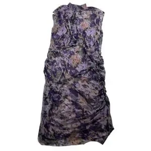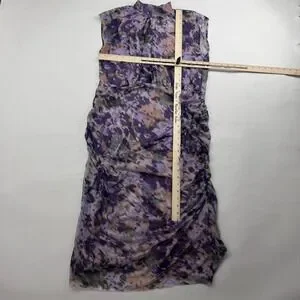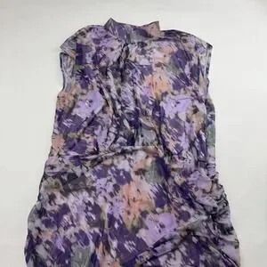 The Chico's Purple Ruched Mesh Midi Dress is a versatile and stylish option for various occasions. This sleeveless dress features a high neckline and a floral pattern, making it suitable for events like weddings, parties, workwear, and more. Made from stretchy mesh fabric, this knee-length dress in size 16/18 offers comfort and style for any season. Easy to care for with machine washable instructions, this Chico's dress is a great addition to any woman's wardrobe.