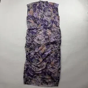 Chico's Purple Ruched Mesh Midi Dress Lined Sleeveless Stretch 16/18 (Chico 3)