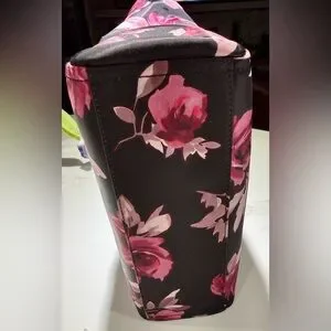 Preowned, no callouts, hand straps are perfect and removable crossbody strap is perfect, no flaws or rips to outside or clean black inner lining, snap top closure with zipper pocket on each side, inner zipper pocket and slip pockets. See pics for measurements and feel free to ask questions. I’ve seen this called “Hawthorne Lane” and “Wilson Road” so idk😎. Black with dark red/pink roses. Perfect lightweight bag for shopping and a crossbody strap for when both hands are full! Beautiful too! I ship every day.