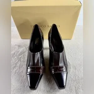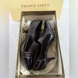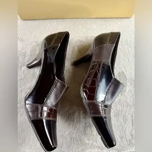 Chic and stylish heels by Franco Sarto. Sleek black and brown design. Perfect for any occasion. Excellent condition, croc embossed heels.