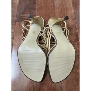 Vintage Y2K Gold Strappy Stiletto Sandals Open Toe Heels Size 37 NWOT