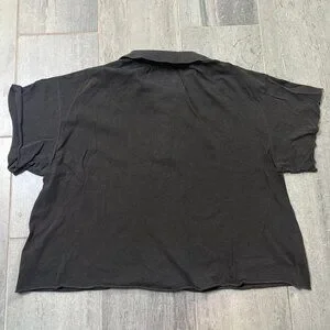The GREAT. Oversized Boxy Cropped Polo Raw Hem & Sleeves Gray Size 1/Small