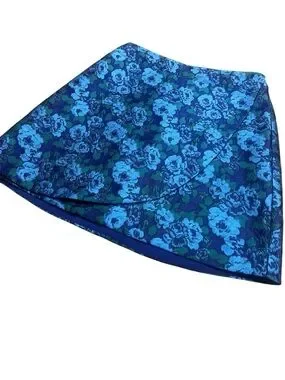 Anthropologie Mauve Blue and Green Floral Faux Wrap Mini Skirt, Size 0