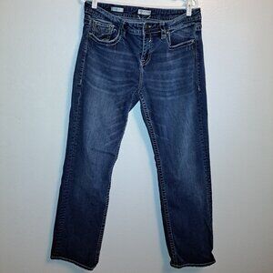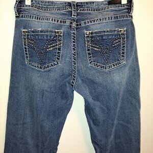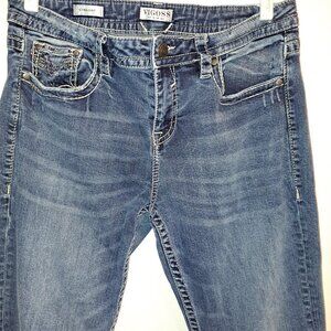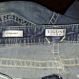 Vigoss Straight Embroidered Pocket Denim Jeans .Pre-owned Condition Size 16 *see Pictures for measurements **Small Spot of Discoloration Shown in picture