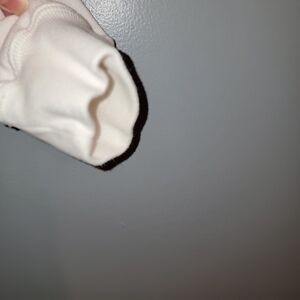 Soft white crewneck featuring Abercrombie & Fitch woven label. Clean, minimalist branding at neck. Comfortable everyday layering piece.