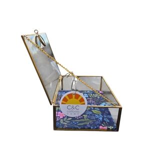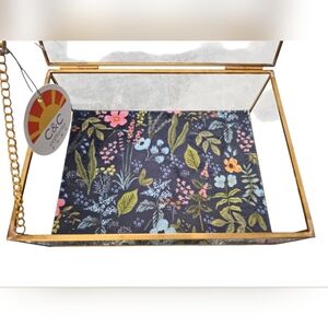 C&C California - NEW Floral Glass Jewelry Box Trinket Box w/Patina Gold Frame