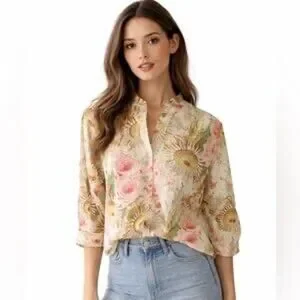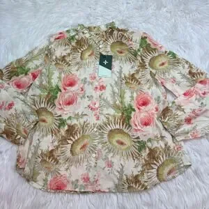 Tuckernuck Sun Faded Floral Pink and Green Sunflower Blouse Size M NWT Classic
